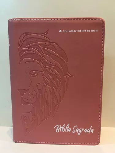 Bíblia Linha Ouro Leão ARC Letra Grande c/ Fecho Rosa