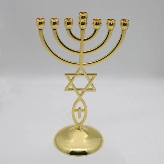 Candeladro Menorá Gold Templo Judaico 13x10 cm