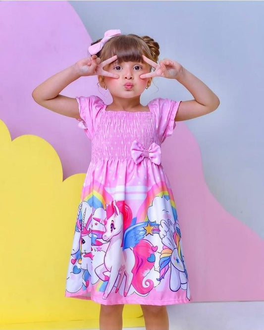 Vestido Manga Bufante Unicórnio