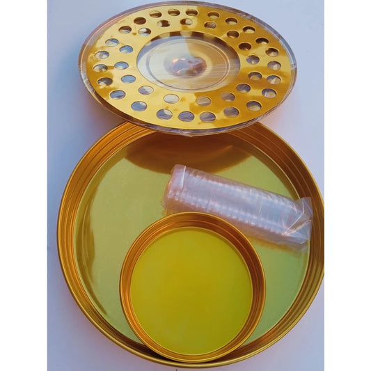 BANDEJA PEQUENA DE ALUMÍNIO DOURADO PARA CEIA +16 CÁLICES