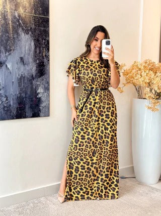 VESTIDO LONGO ESTAMPADO COM AMARRAÇÃO - BETÂNIA