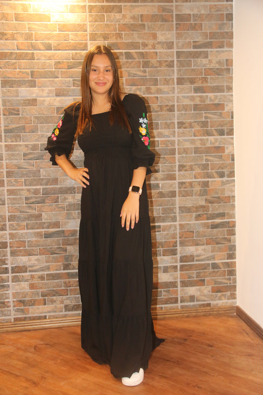 VESTIDO VISCOLINHO COM MANGA BORBADA - REBECA
