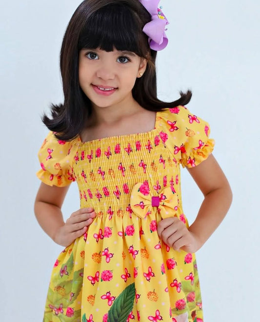 VESTIDO MANGA BUFANTE FLORAL AMARELO