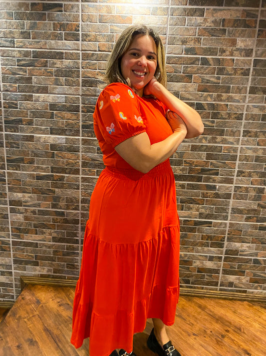 VESTIDO VISCOLINHO MANGA BORDADA - MARIA ALICE