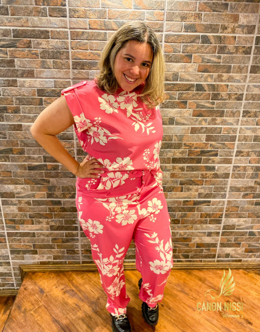 CONJUNTO DE CALÇA E BLUSA FLORAL PLUS SIZE- ISÍS