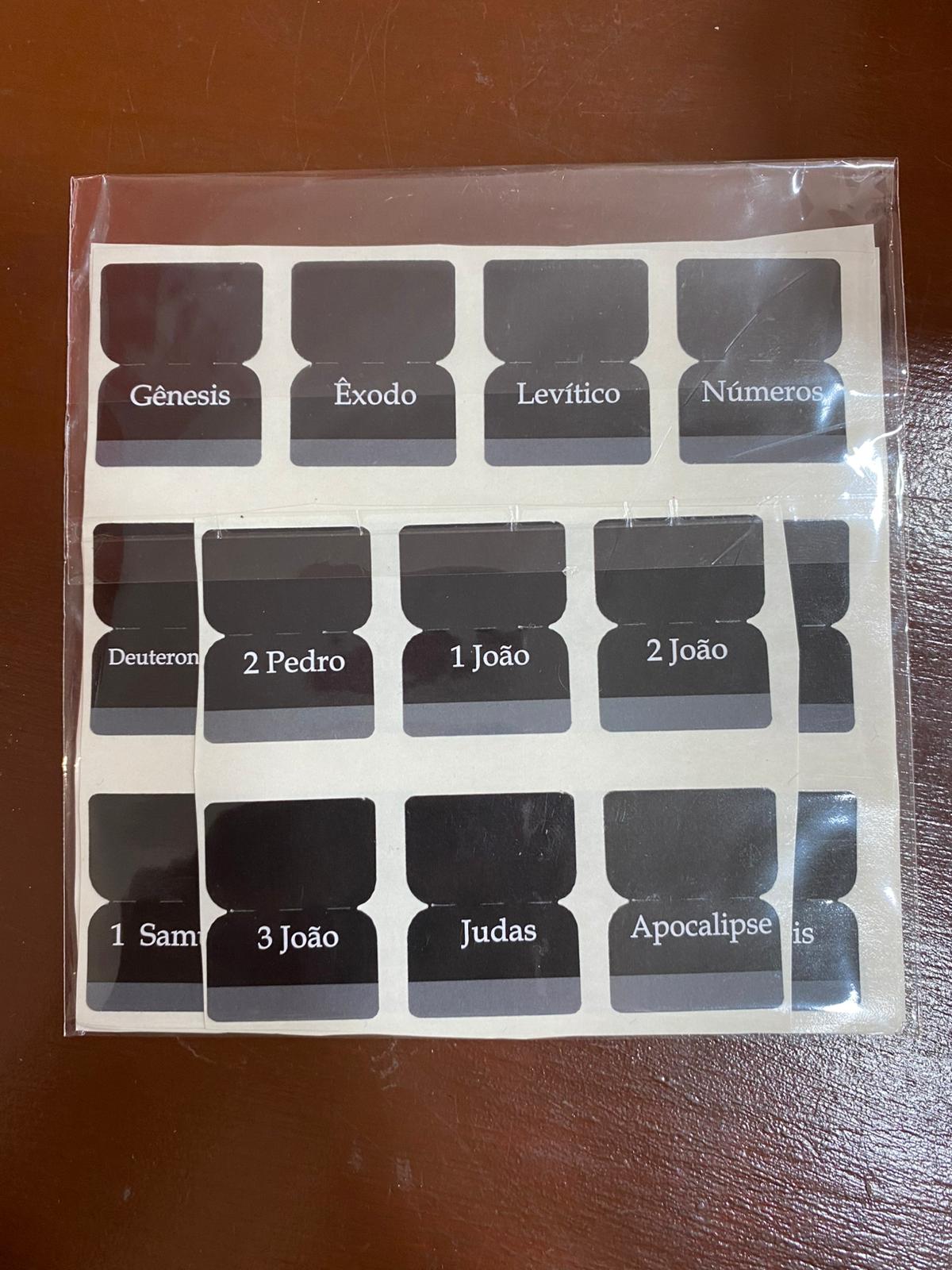 Organização Visual: Geralmente, as abas vêm em cores ou designs diferentes para distinguir os livros do Antigo e do Novo Testamento, ou até mesmo para separar grupos de livros (Pentateuco, Livros Históricos, Evangelhos, etc.), facilitando a sua organização mental da estrutura bíblica.
