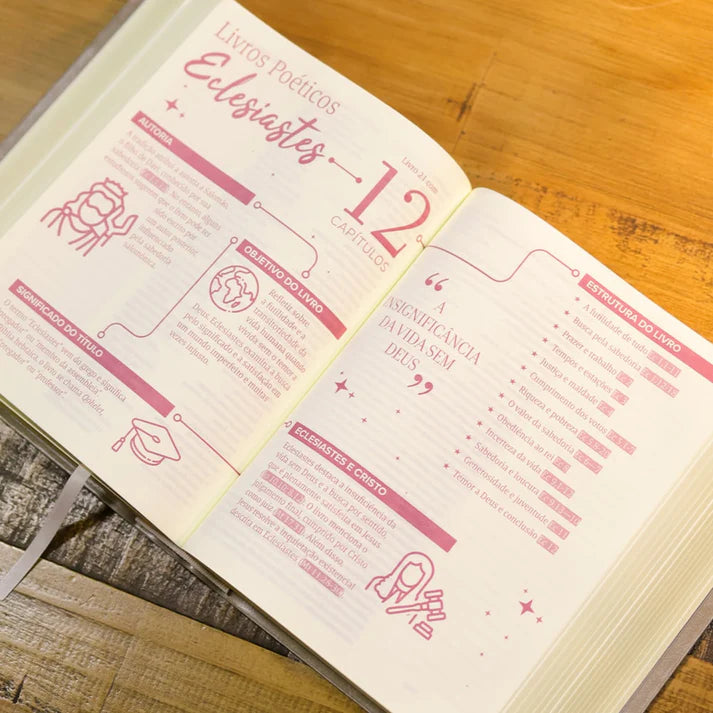 Elaborada com carinho pela pastora Viviane Martinello, esta edição foi pensada para acompanhar você em sua caminhada com Deus. Com espaços para anotações, mapas mentais, introduções aos livros, frases inspiradoras e fonte confortável, ela é perfeita para levar consigo todos os dias.