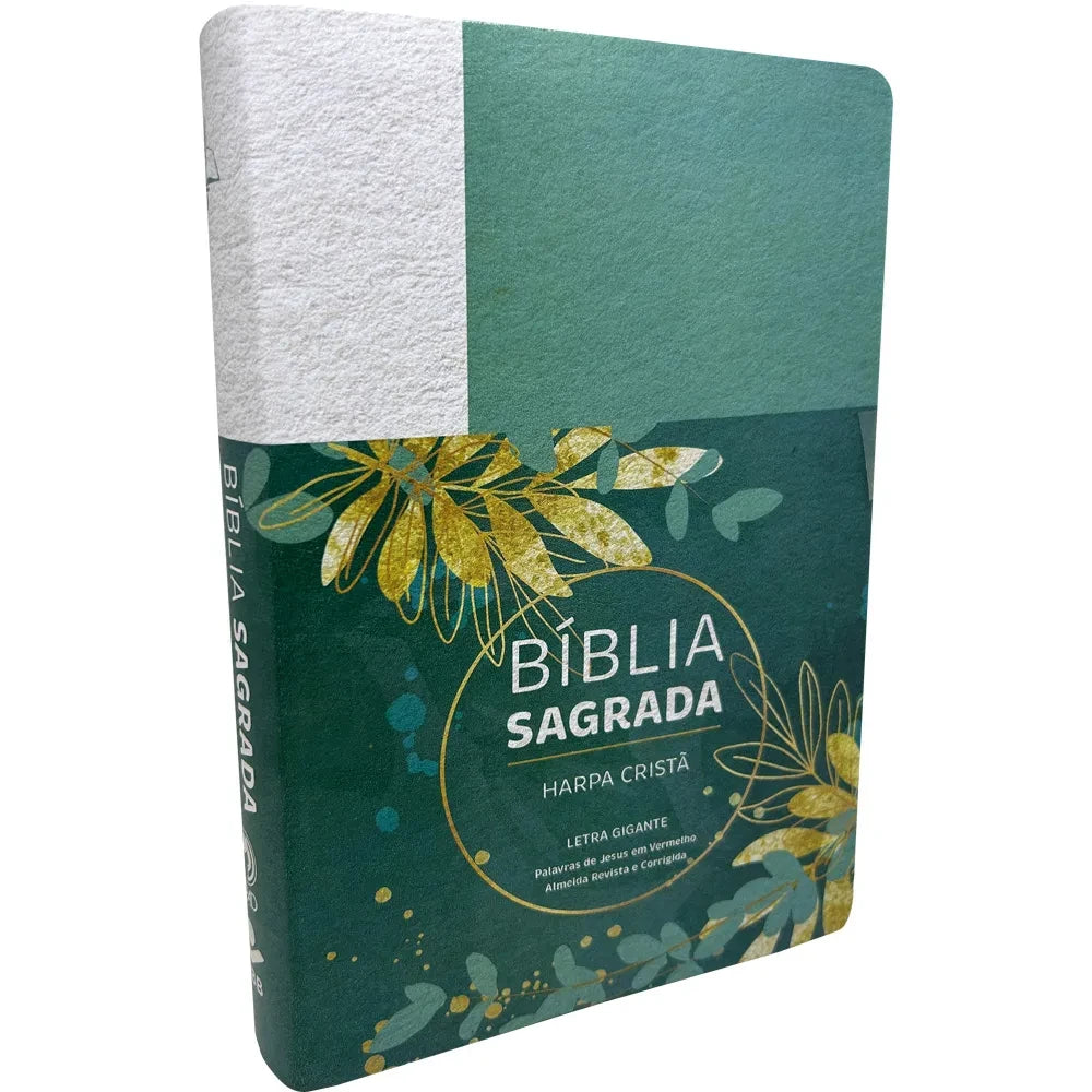 Bible with Popular Christian Harp Giant Floral Letter Green/White (CPAD)