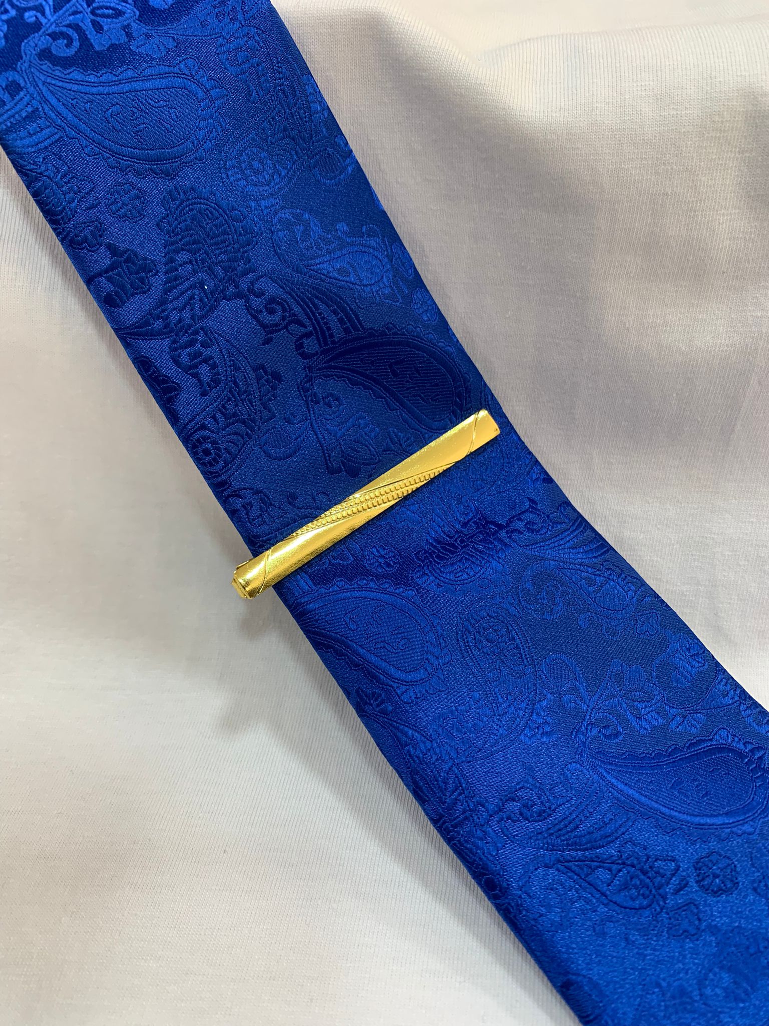 Detalhe Texturizado: A superfície não é totalmente lisa, apresentando um sutil e elegante padrão de linhas horizontais gravadas. Esta textura confere à peça um charme discreto e evita o reflexo excessivo, equilibrando o brilho do ouro com uma refinada sobriedade. Com um formato slim e prático, ele desliza facilmente para prender a gravata na altura correta entre o terceiro e o quarto botão da camisa, de cima para baixo, garantindo que ela permaneça no lugar, mesmo em movimento.