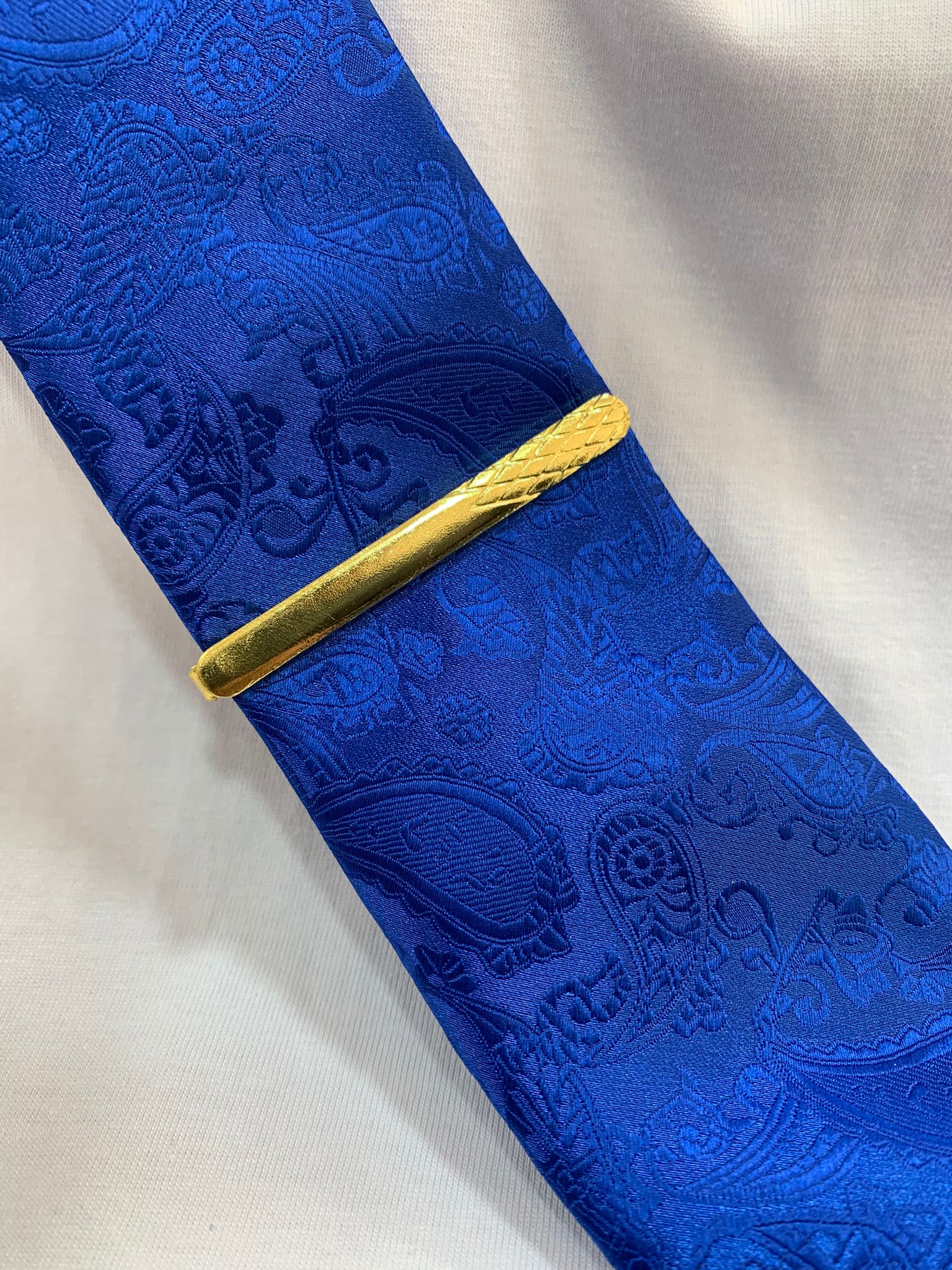 Detalhe Texturizado: A superfície não é totalmente lisa, apresentando um sutil e elegante padrão de linhas horizontais e transversais gravadas. Esta textura confere à peça um charme discreto e evita o reflexo excessivo, equilibrando o brilho do ouro com uma refinada sobriedade. Com um formato slim e prático, ele desliza facilmente para prender a gravata na altura correta entre o terceiro e o quarto botão da camisa, de cima para baixo, garantindo que ela permaneça no lugar, mesmo em movimento.