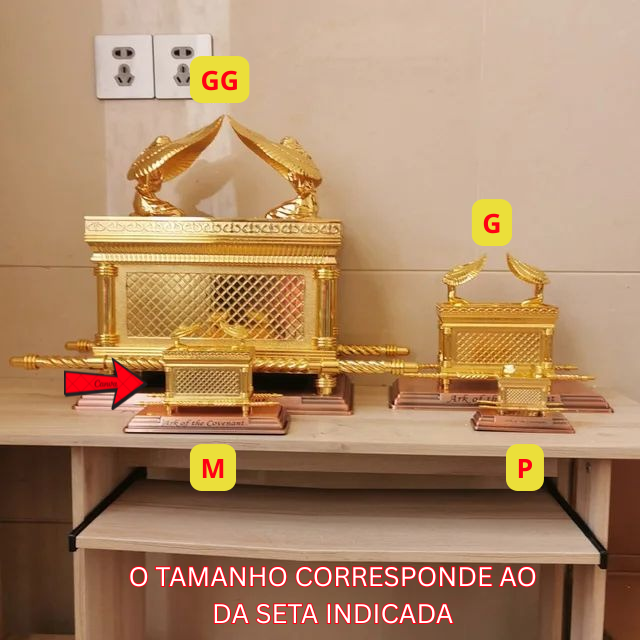 - Design: Réplica detalhada da Arca da Aliança com os dois querubins e barras laterais.