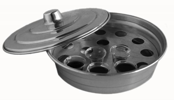 Traga reverência e organização para suas grandes celebrações com a Bandeja de Ceia em Alumínio Prata, completa com 15 Cálices.