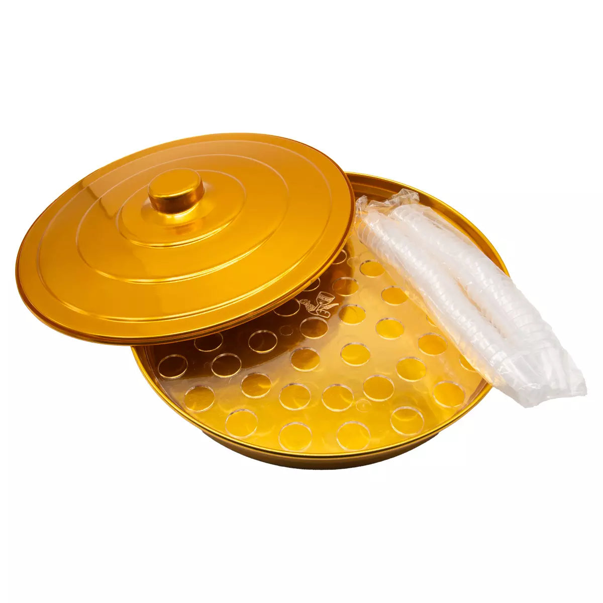 Garanta agora mesmo a sua Bandeja dourada para 56 Cálices e adicione praticidade e elegância às suas celebrações!