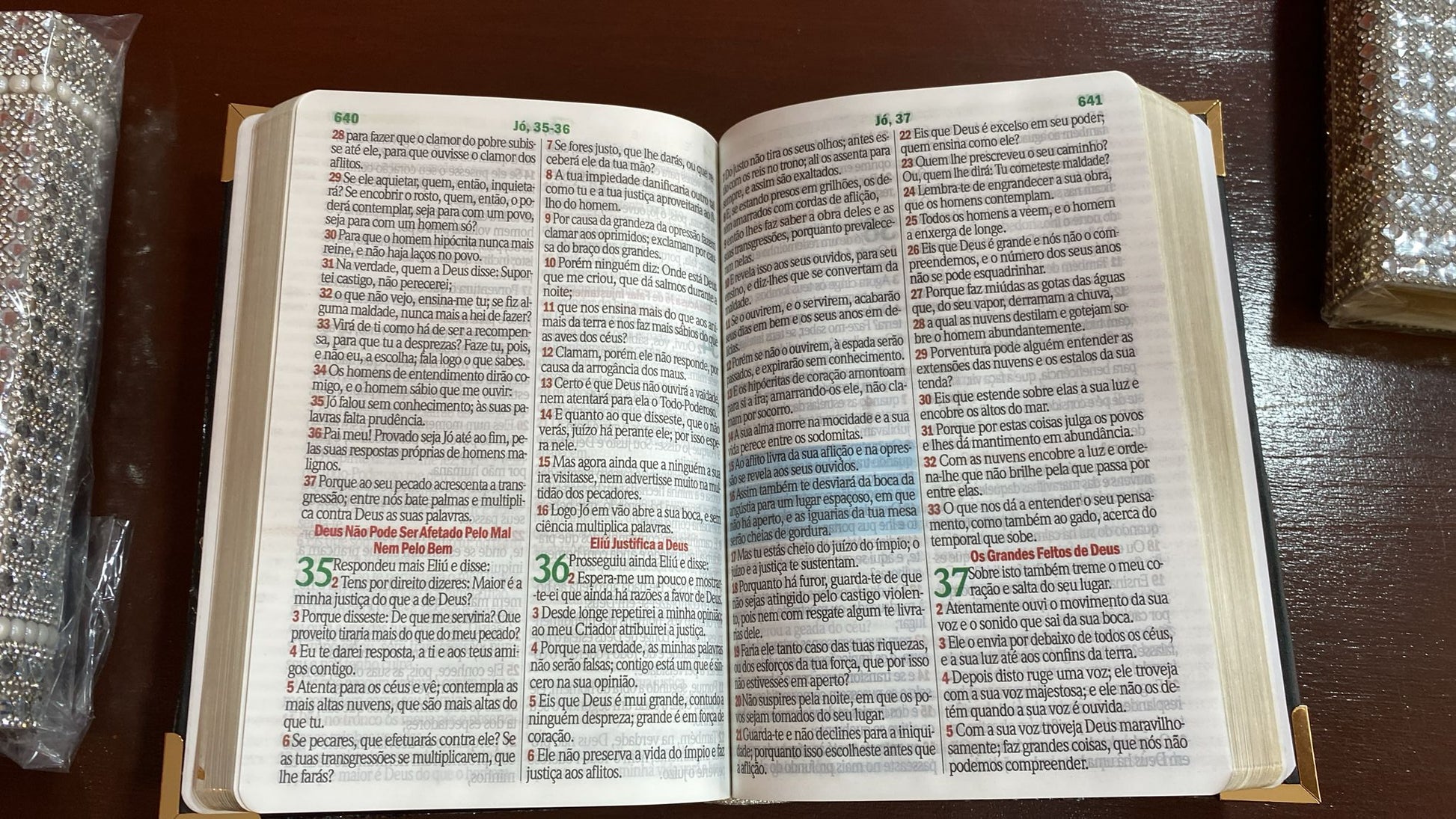 Palavras de Deus em Azul: As frases atribuídas diretamente a Deus estão impressas em azul, facilitando a identificação.