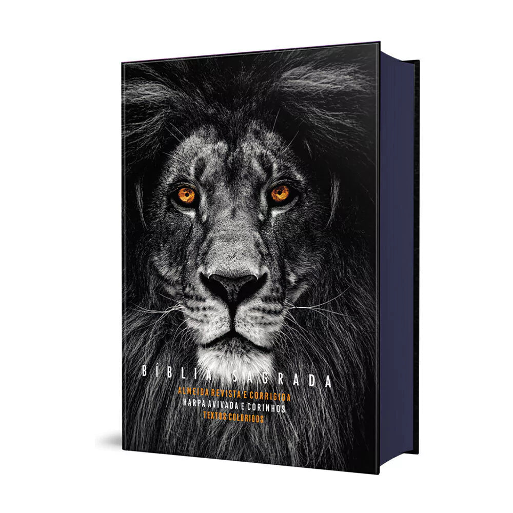 BIBLIA ARC COM TEXTOS COLORIDOS E HARPA LEAO COM OLHOS DE FOGO