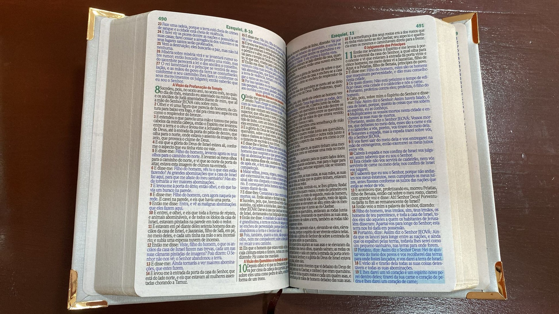 As palavras de Deus estão impressas em azul.