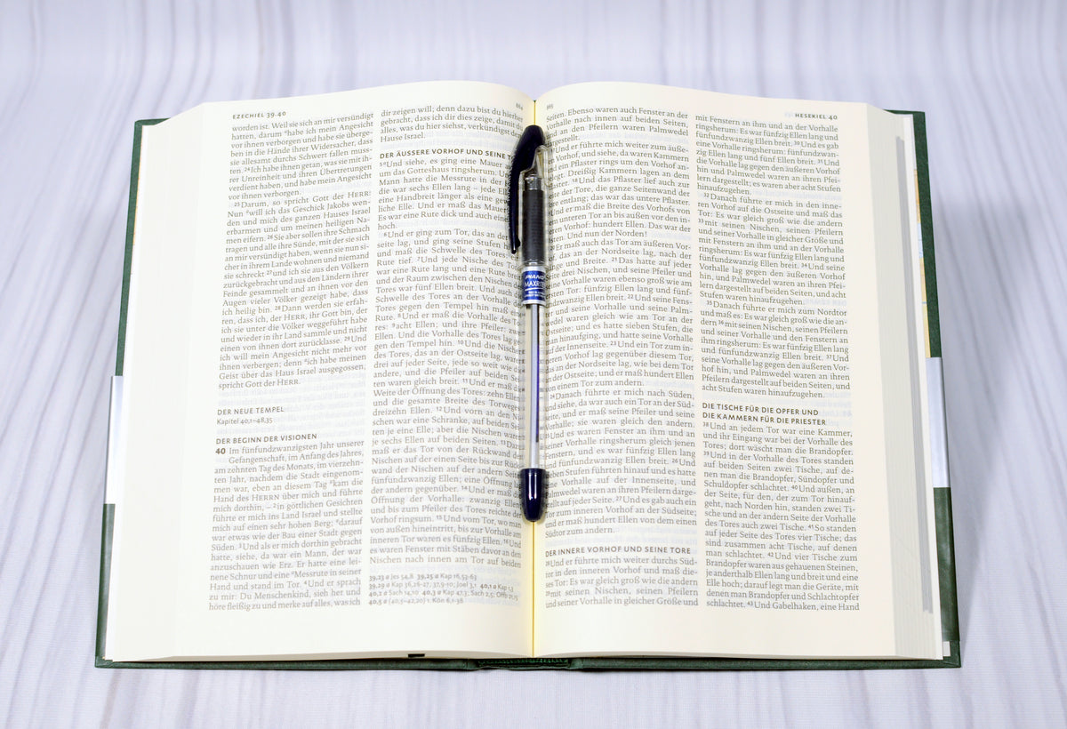 Bibeltext abschnittsweise zweispaltig gesetzt