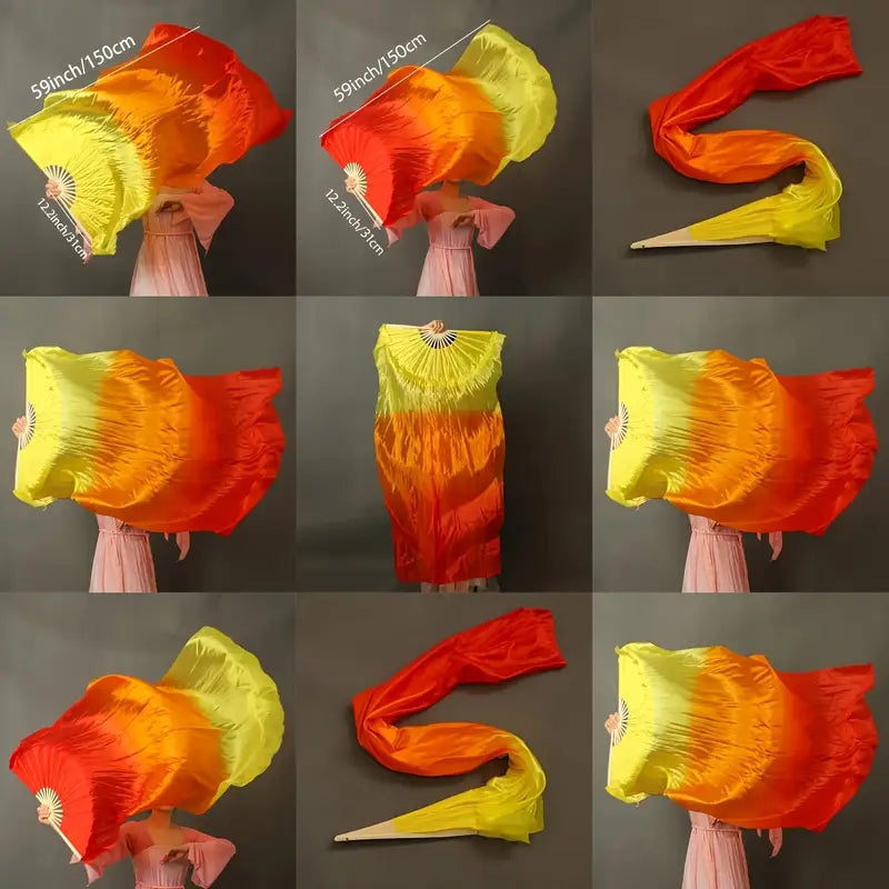 O tecido de seda, leve e etéreo, respira as cores da paixão celestial. Começa em um vermelho profundo, que fala do amor sacrificial e do sangue que nos redimiu, e avança com um laranja incandescente, o calor da presença que queima o que é impuro. Por fim, culmina no amarelo solar, que irradia a glória inconfundível de Deus, a luz da Sua face.